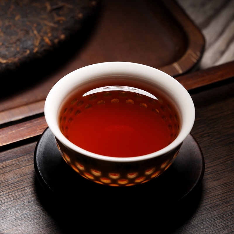 The tea leaves at the base are uniform in appearance, soft, flexible, and plump. They boast strong, long-lasting water absorption, becoming full and substantial when brewed. The soup takes on a light brown shade, accompanied by a unique aged fragrance that feels smooth and mellow. Its flavor is rich and intense, delivering a profound, memorable taste experience.