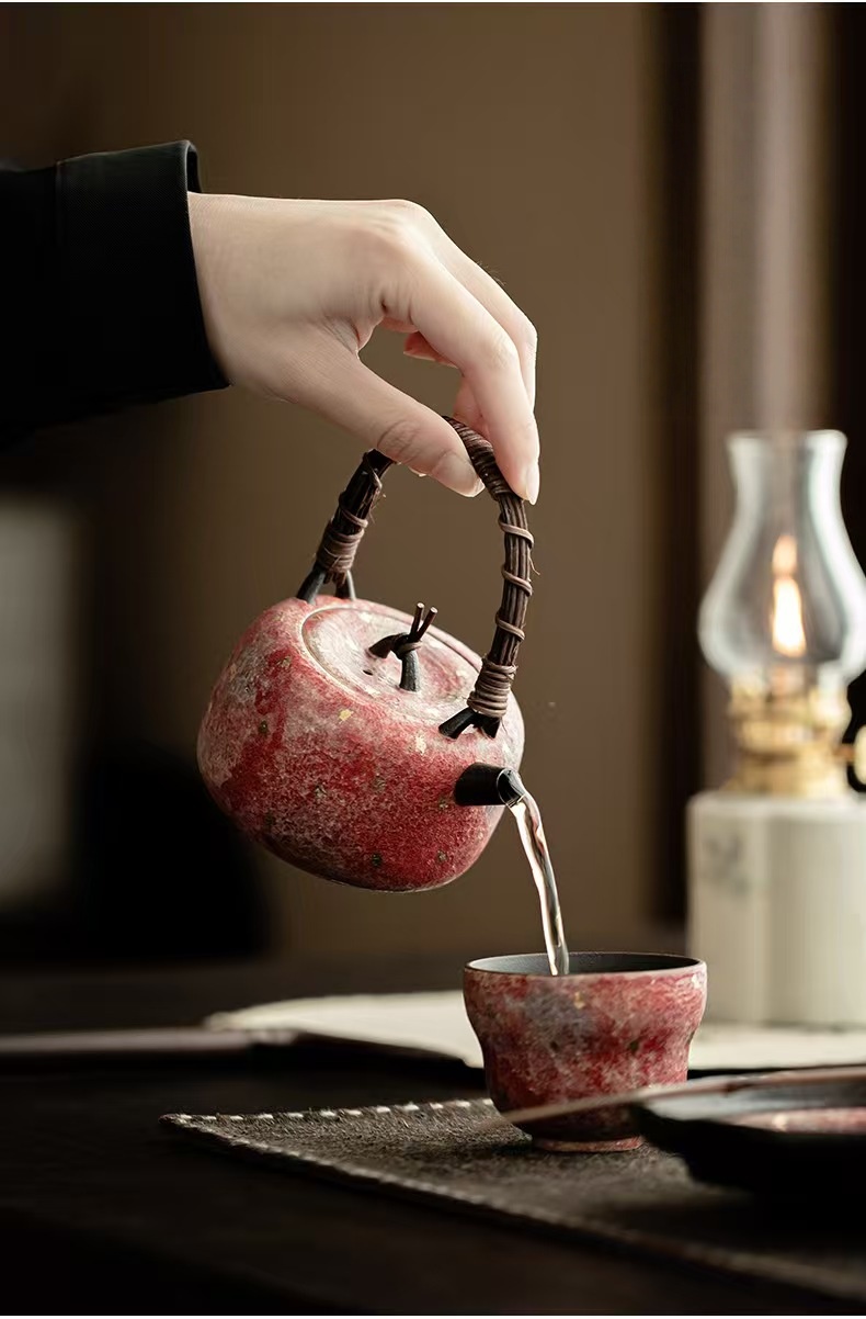 he tea set features patchwork textures with a smooth touch—smoother surface and more comfortable texture than ordinary rock-mineral tea sets. Its mottled appearance carries simplicity and depth, evoking nostalgia and vintage charm, along with ancient cultural appeal and a serene, restrained style (blending clumsiness with ingenuity to align with contemporary eclectic aesthetics). This unique tactile & visual experience helps tea shops retail bulk distinctive tea sets and enterprises procure gifts with cultural depth, attracting end-users pursuing niche aesthetics.