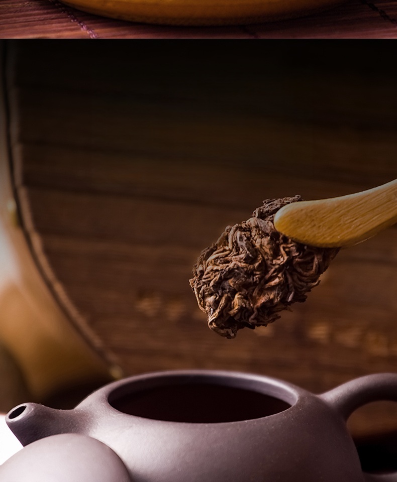 For aged tea heads, the selection of raw materials is crucial—high-quality fresh leaves from Menghai Banzhang ancient tea trees (or varieties of equal or higher grade) must be used. The purity of fermented tea also matters significantly: the purer the tea material, the more intense, rich, and smooth the tea infusion will be. Such tea has almost no astringency, offering a full-bodied, sweet taste in the mouth and a long-lasting aftertaste.