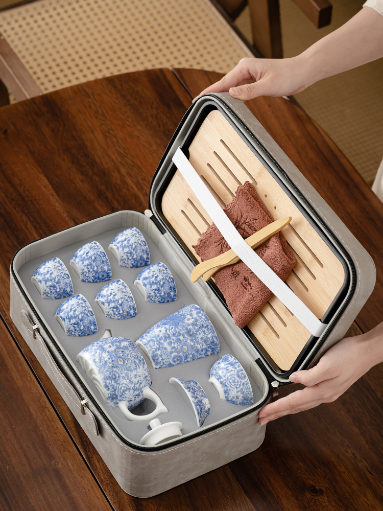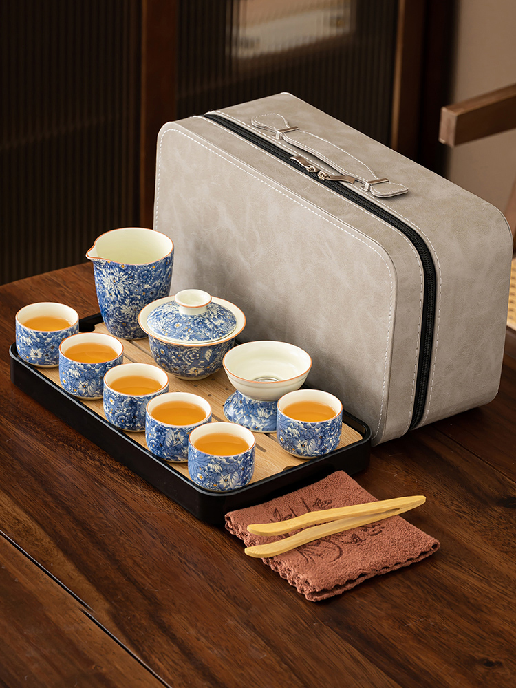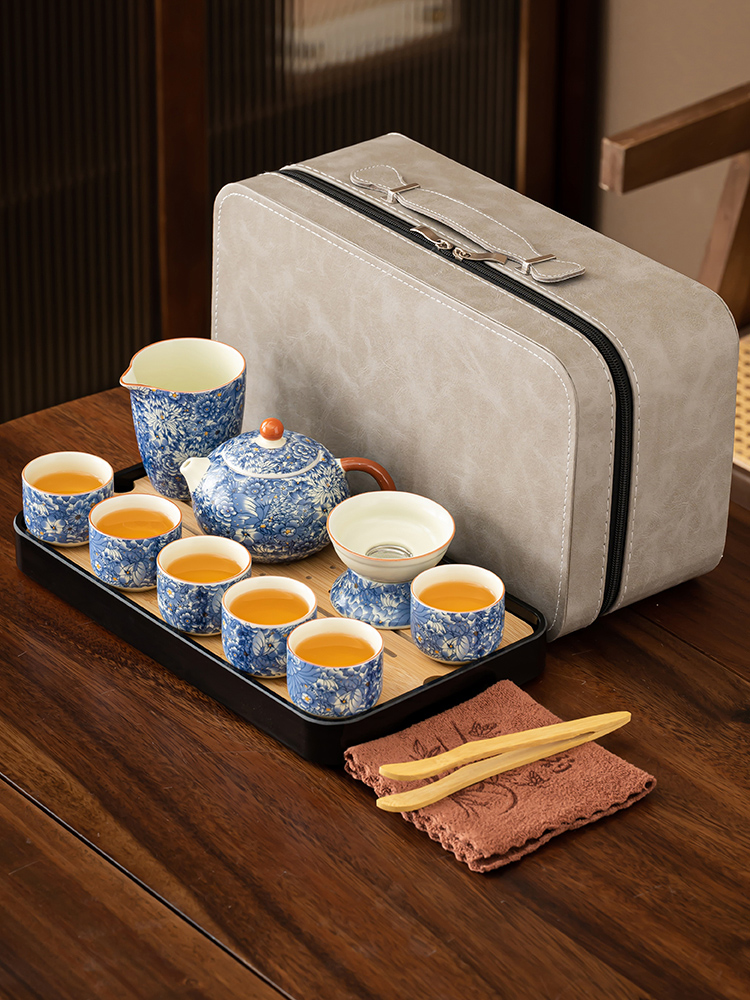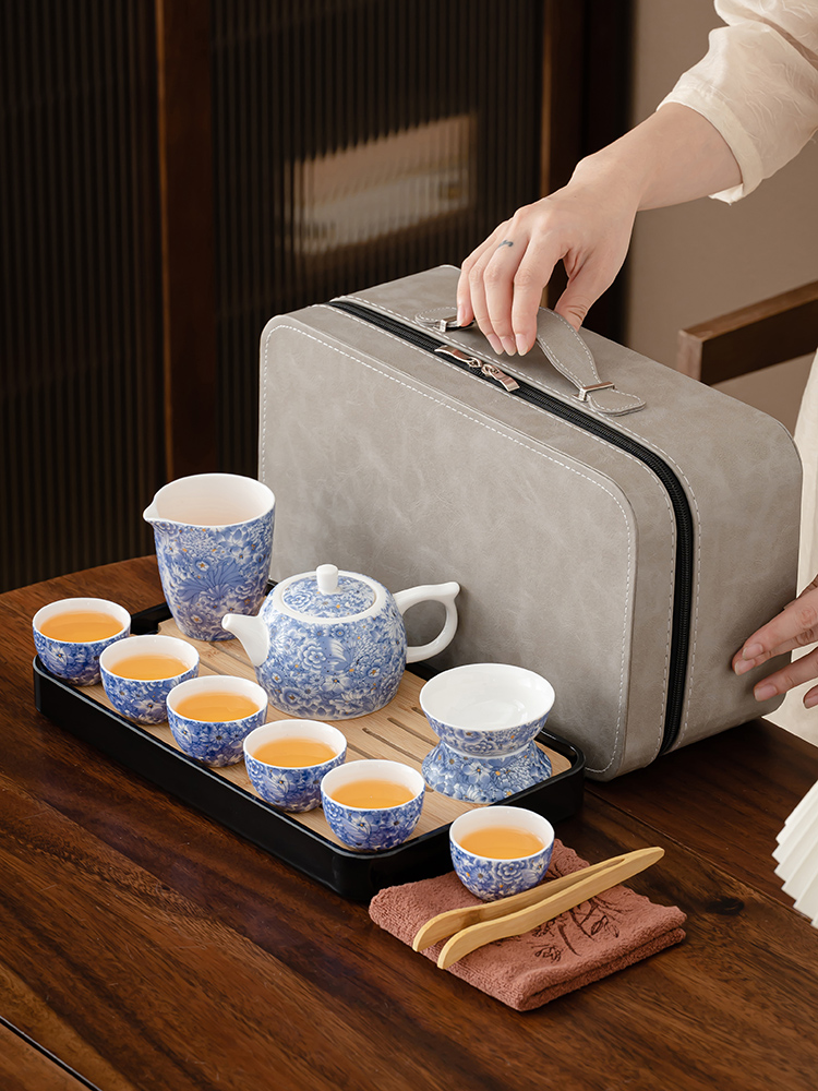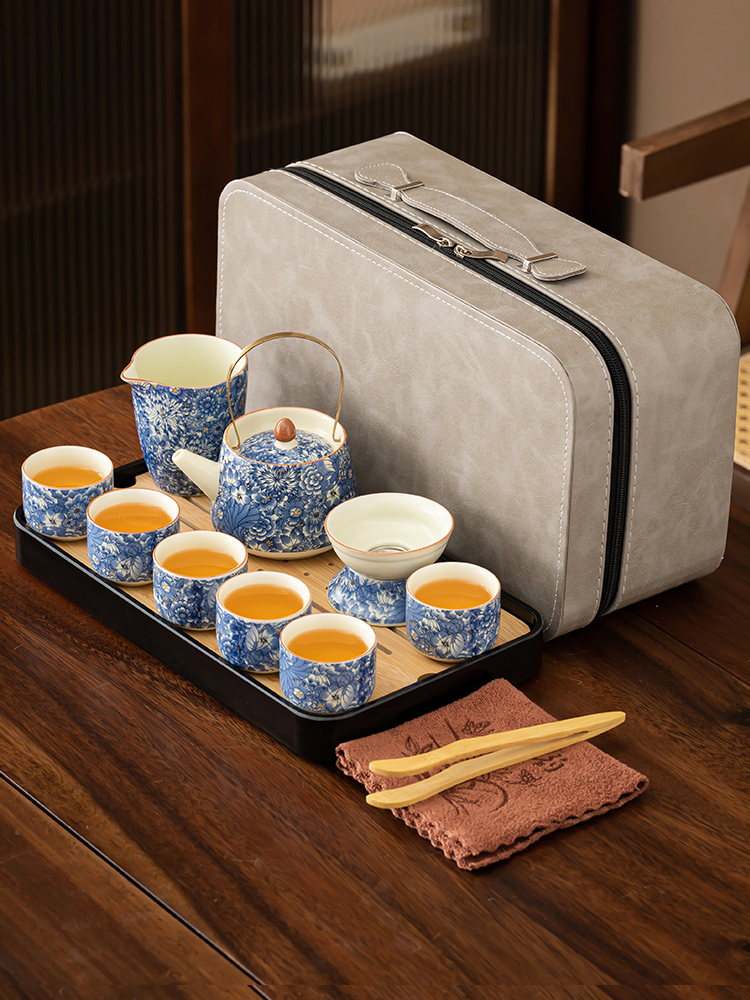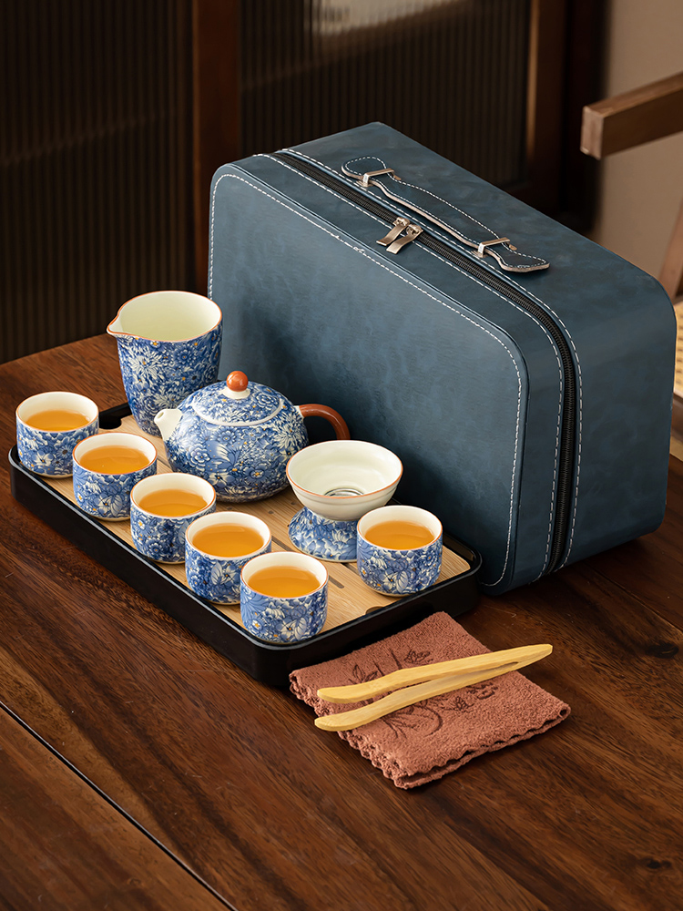 【Product Name】: Flowing Blossoms Silk Jade Ceramic Travel Tea Set