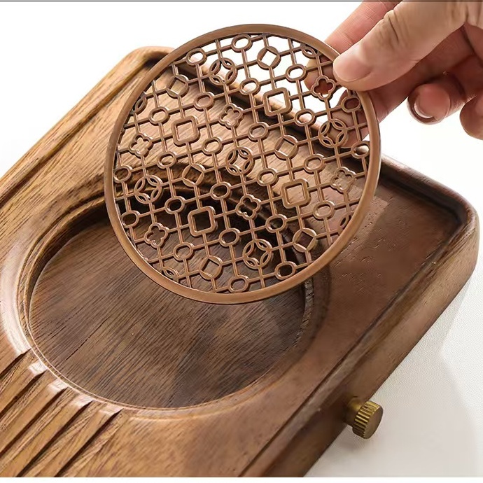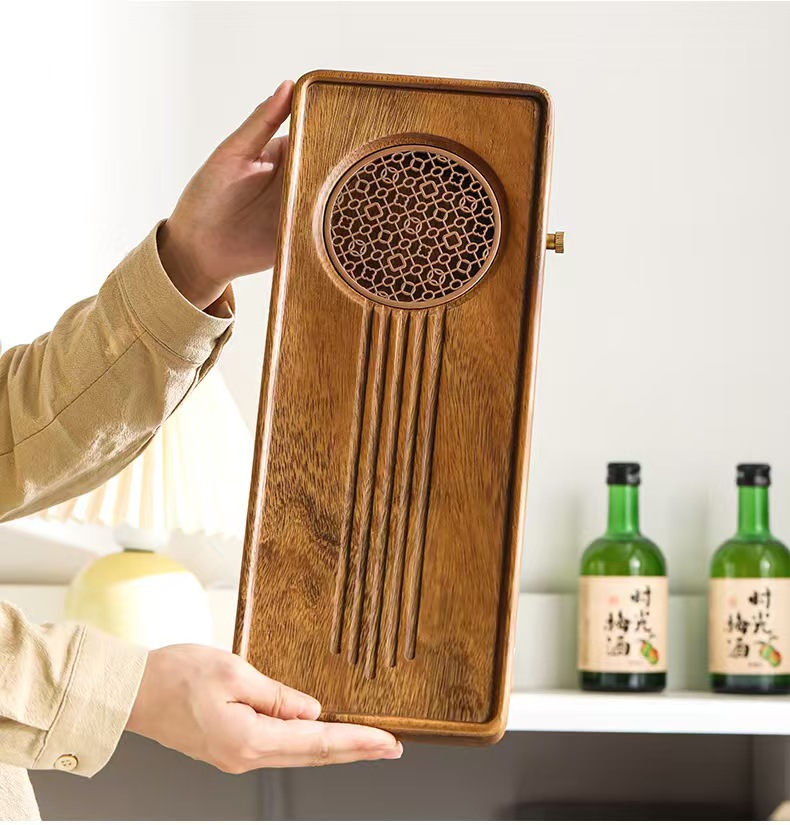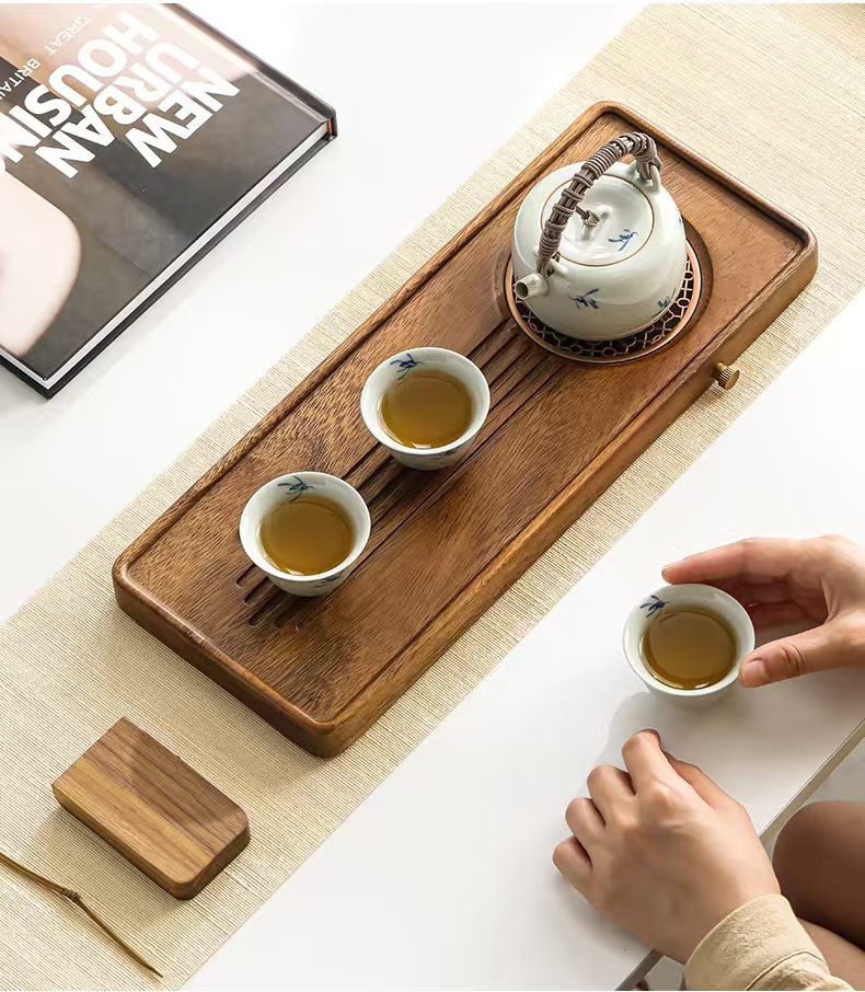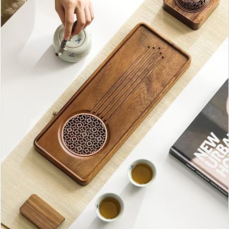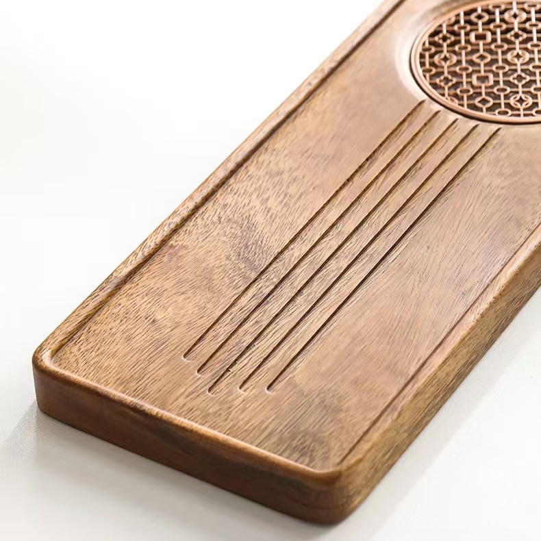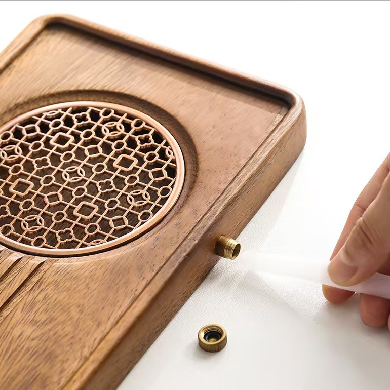 Low trough system self-drainage: The tray base’s drainage system of this wholesale walnut wood tea tray uses scientifically calculated surface slope. It quickly channels tea water into the drainage outlet, forming a self-drainage system with smooth, natural water flow. This design meets tea shops’ bulk procurement of hassle-free tea trays (reducing manual water cleaning) and enterprises’ demand for convenient tea accessories, helping wholesale clients attract users who value efficiency.