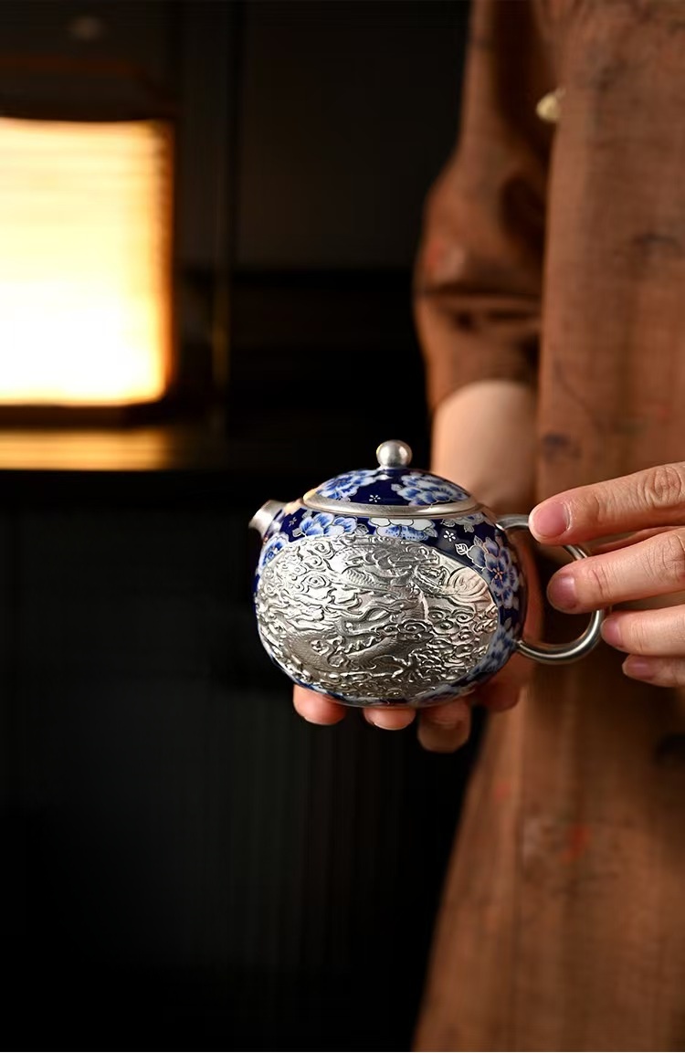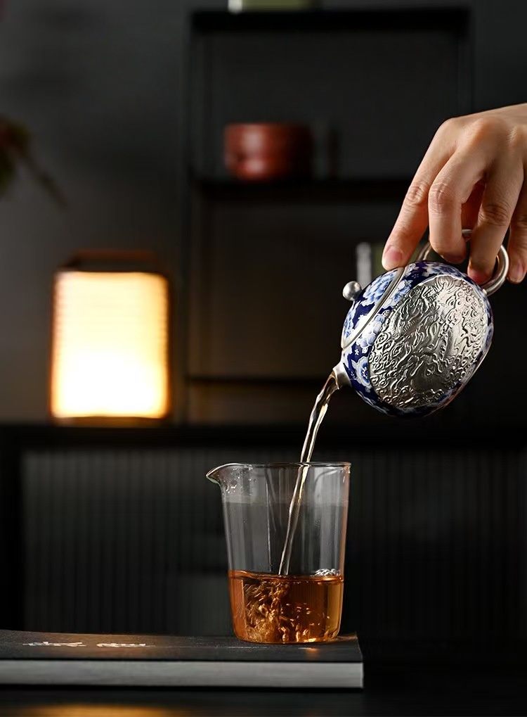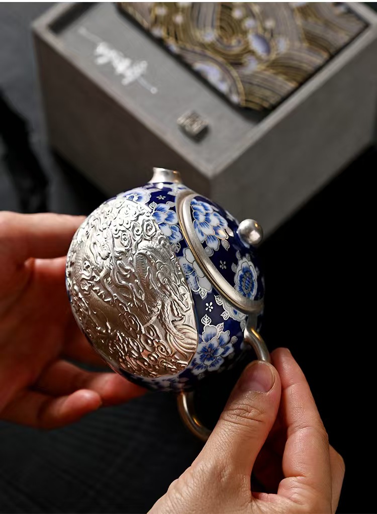 The gilding technique reveals a noble temperament, and its cultural essence is embodied in utensils that combine silver and porcelain. With tea drinking as the carrier, these utensils integrate the connotations of Confucianism, Taoism, and Buddhism, standing out in the Chinese tea culture gift market and forming a beautiful landscape. The artisan craftsmanship passed down for thousands of years makes the tea sets emit a unique artistic fragrance, and the color accumulated over time endows the tea sets with a strong sense of the times.